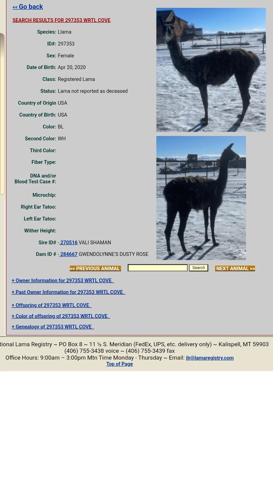 • Sire ID#: Vali Shaman